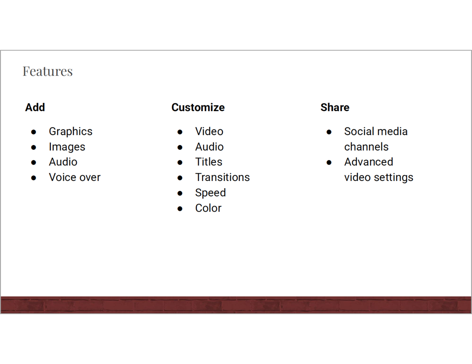 - In the demo, you will create a new project, import a video, cut a video, add a logo, import an image and crop and rotate, pan and zoom on the image, add transitions, add graphics, and audio.